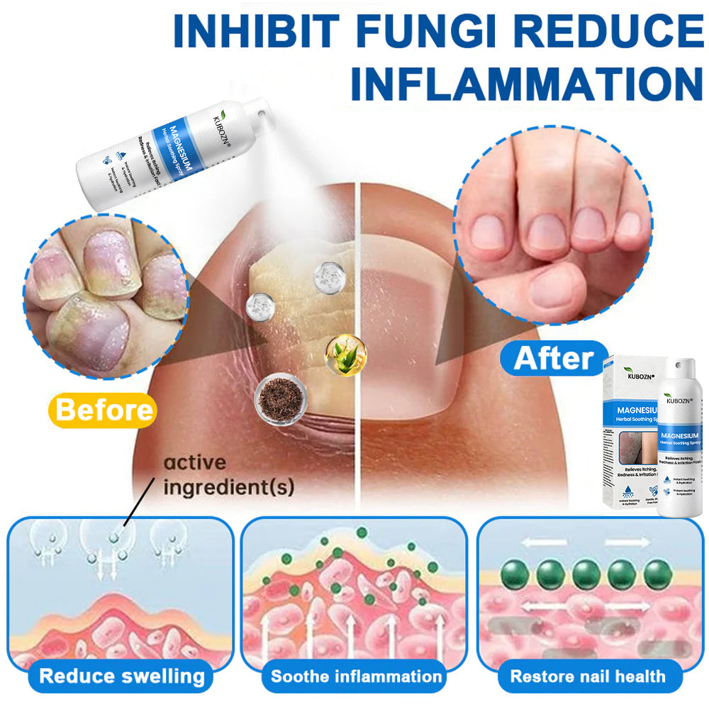 KUBOZN®Magnesium Repair Spray penetrates deep into the skin, gently cleansing from the inside out and quickly relieving itchiness and inflammation caused by psoriasis. This steroid-free, non-irritating formula is safe for sensitive and compromised skin. KUBOZN® helps regulate excessive skin cell proliferation, soothes redness, flaking, and stinging, and supports the restoration of the skin's natural barrier—bringing your skin back to balance and health.